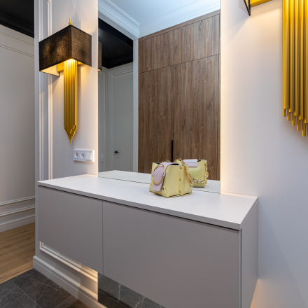 При разработке мебели мы учитываем геометрию и особенности пространства, высоту потолков, рост членов семьи, какой стиль в квартире, какие материалы и цвета вы предпочитаете, ваши пожелания и полет фантазии дизайнера.